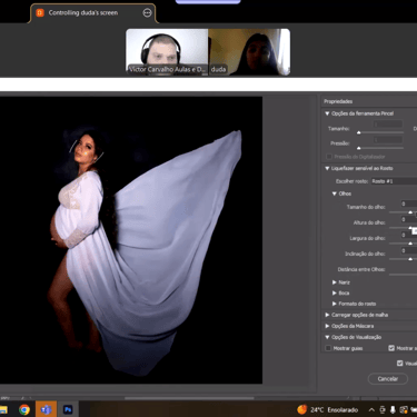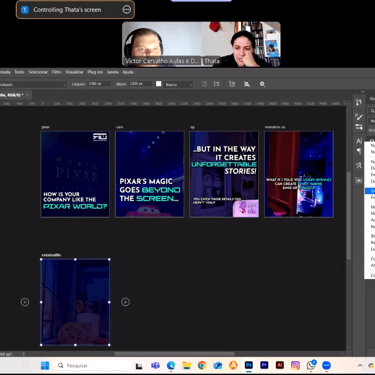 R: Pelo Zoom, adquiro o controle remoto de sua tela enquanto te explico tudo que precisa saber pela voz e vídeo